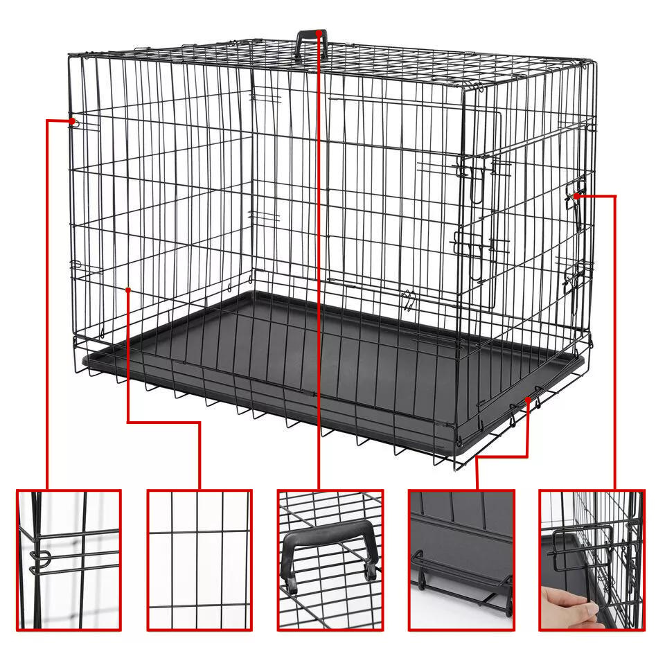 כלוב רשת לאילוף כלבים 122 ס”מ אורך, 4 מ”מ עובי ברזל, עם 2 דלתות ומגש פלסטיק נשלף