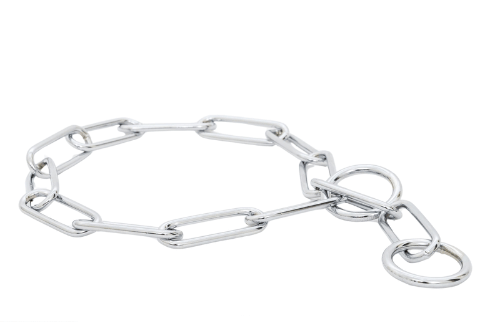 קולר חנק חוליות העשוי מחומר פלדה מצופה המגנה ושומרת על הפרווה של הכלב.